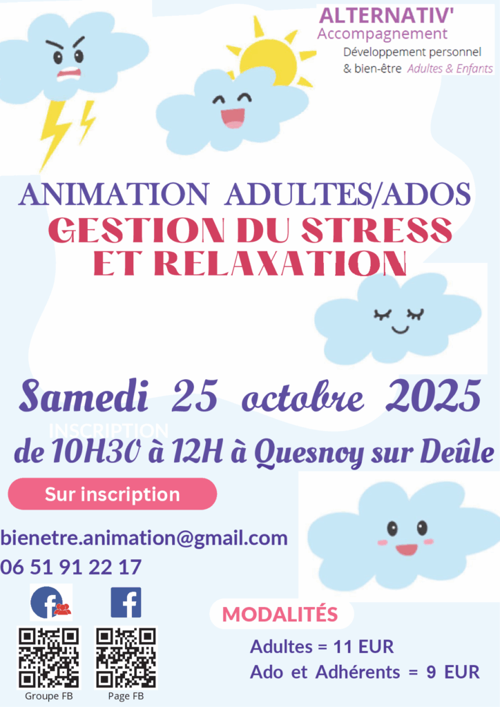 - Animations Adultes : Relaxation, gestion du stress, développement personnel…