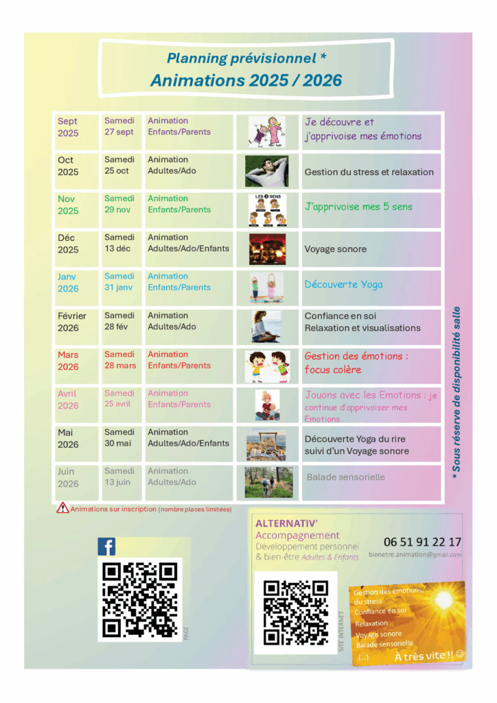 - Animations Adultes : Relaxation, gestion du stress, développement personnel…