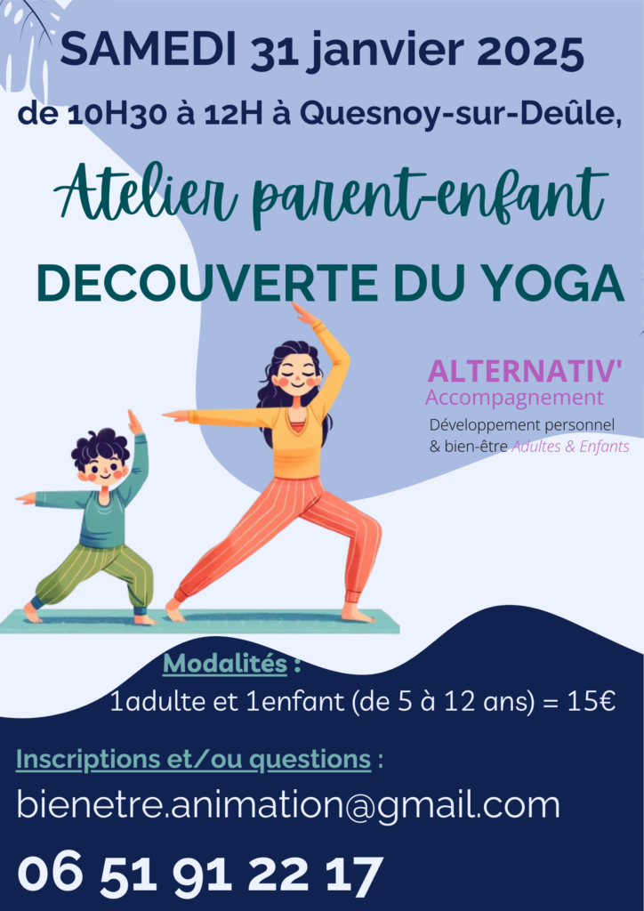 - Ateliers Parents/Enfants : Découverte des émotions, stimulation des 5 sens, yoga familial…