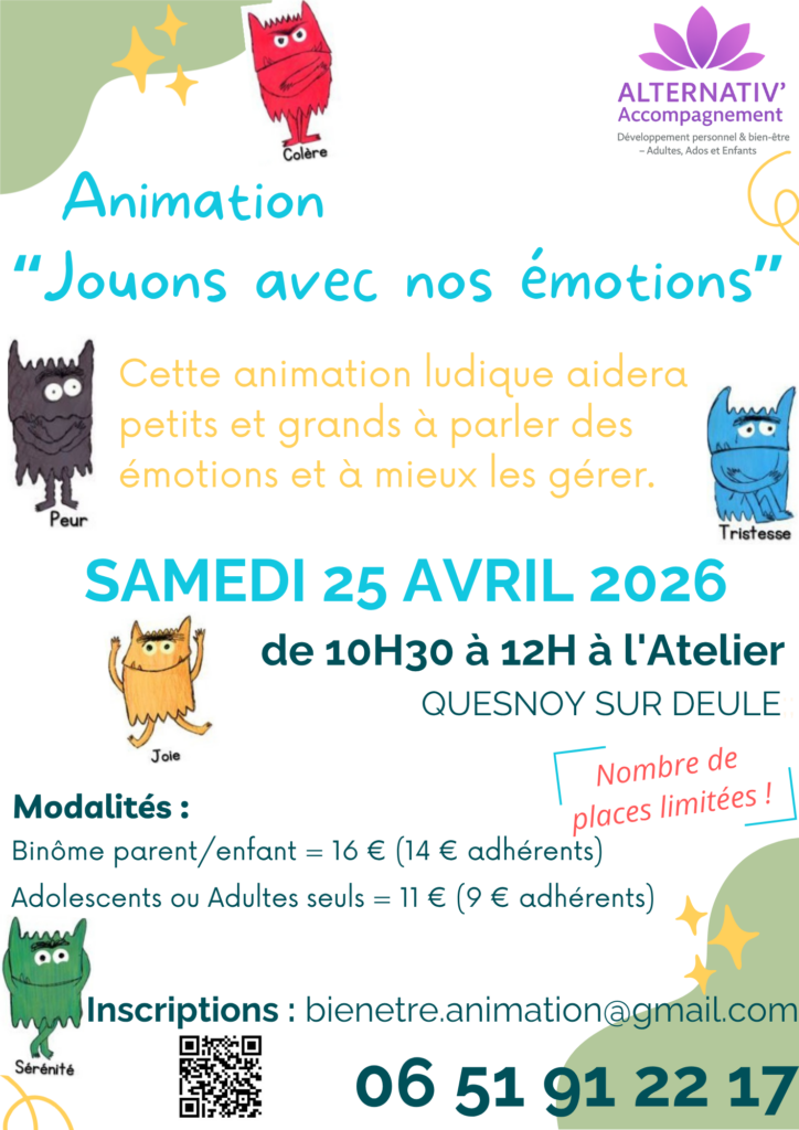 Alternativ’ Accompagnement est une association dédiée au développement personnel et au bien-être, pour les adultes et les enfants. Nous proposons un espace unique où chacun peut venir puiser, partager et grandir grâce à des ateliers thématiques, des moments de détente et des échanges enrichissants.